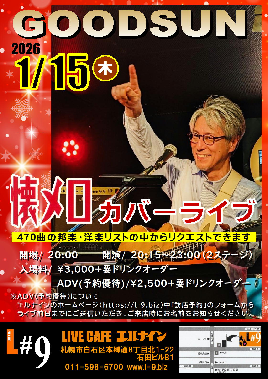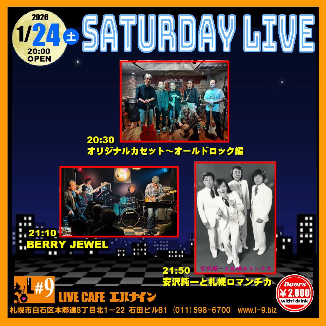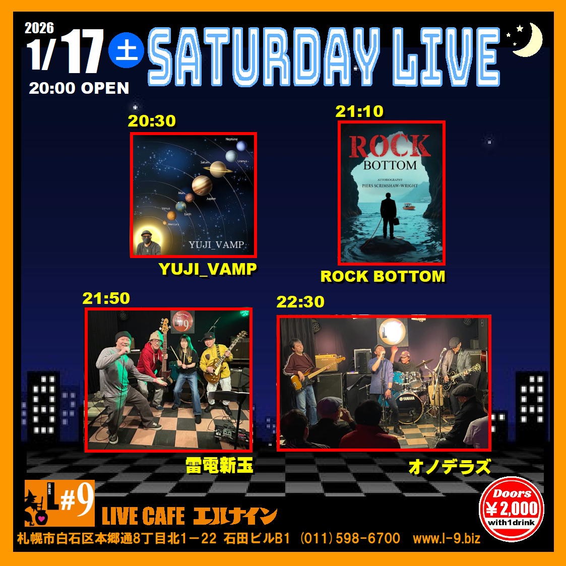 札幌市白石区本郷通8丁目北1-22 石田ビルB1TEL 011-598-6700 E-mail info@l-9.biz■営業時間/20:00~(L.O.23:00) ■定休日/水曜定休、他不定