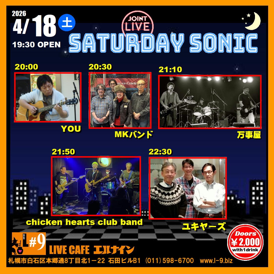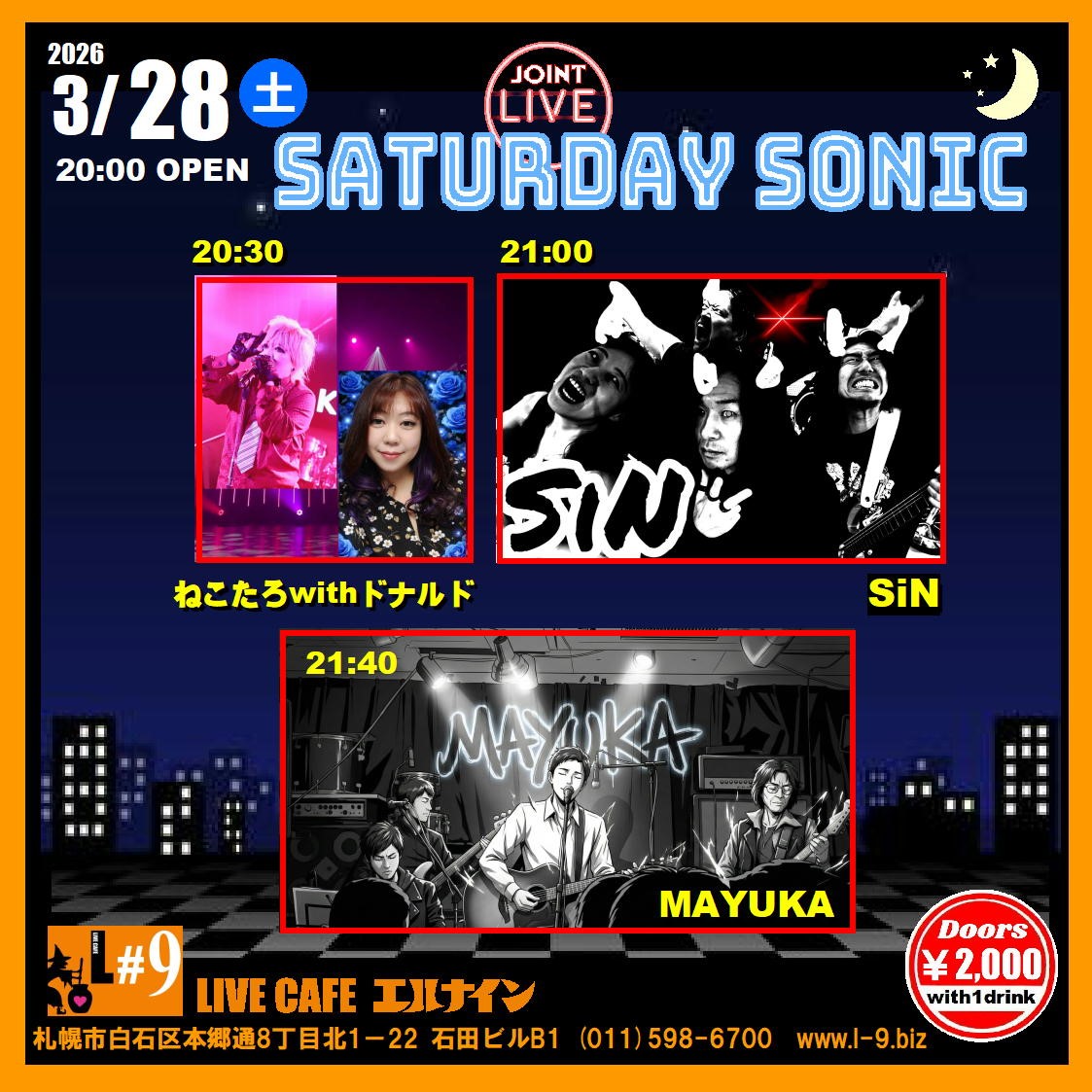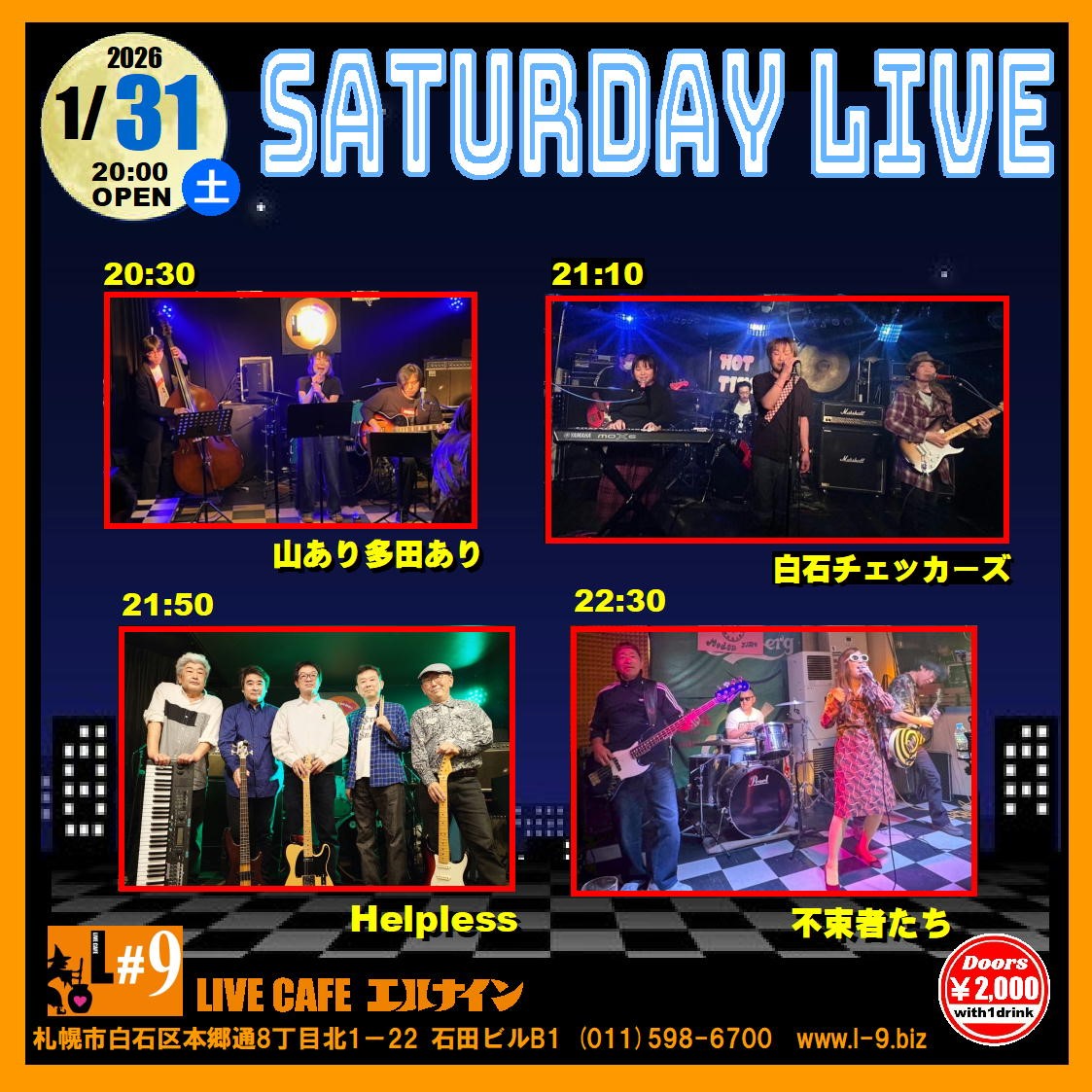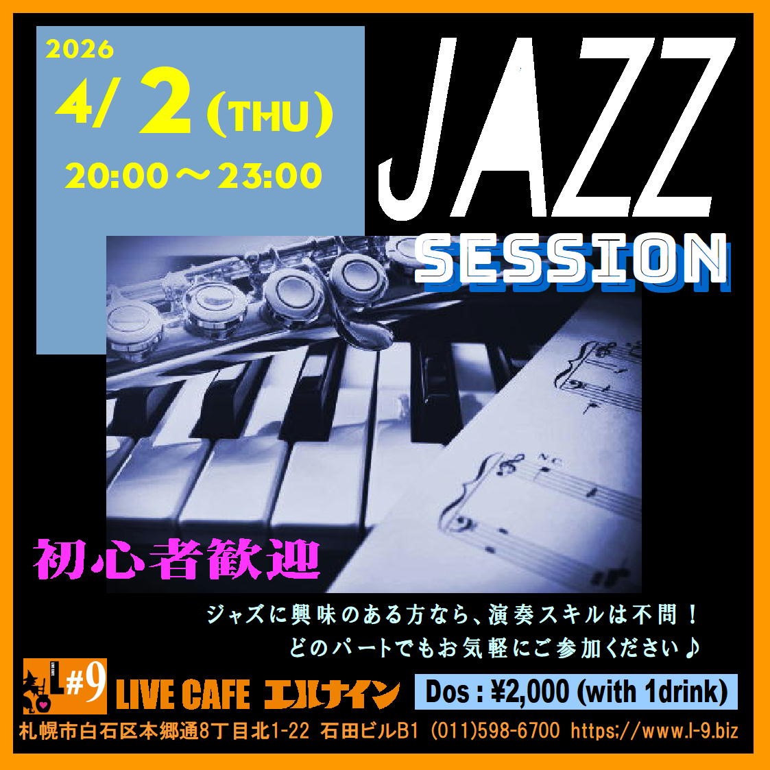 札幌市白石区本郷通8丁目北1-22 石田ビルB1TEL 011-598-6700 E-mail info@l-9.biz■営業時間/20:00~(L.O.23:00) ■定休日/水曜定休、他不定