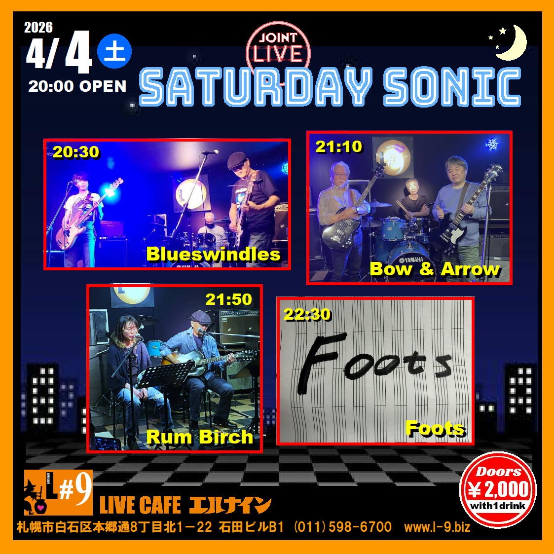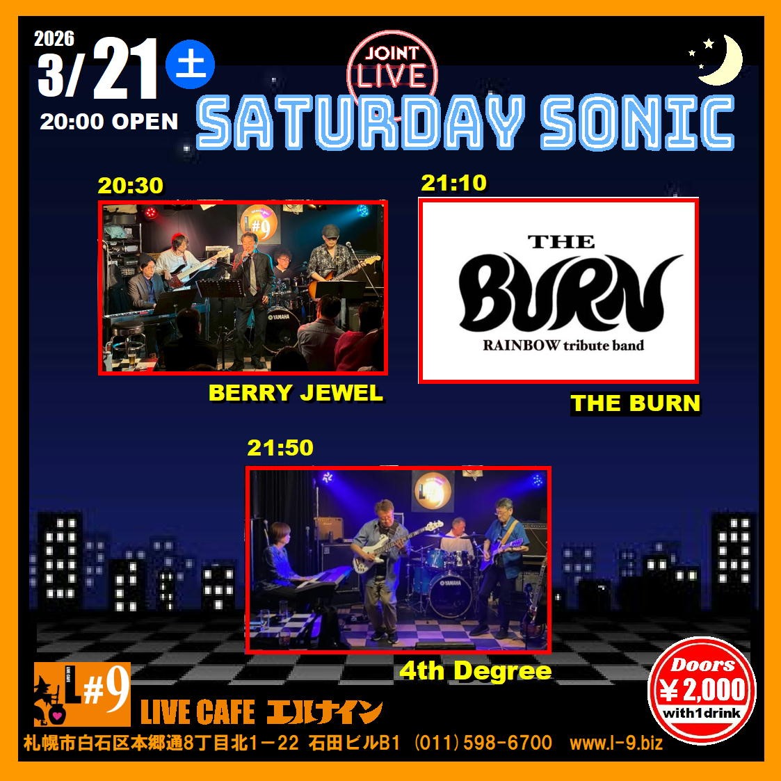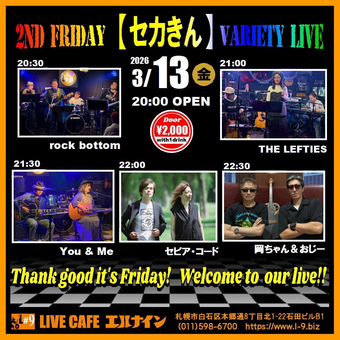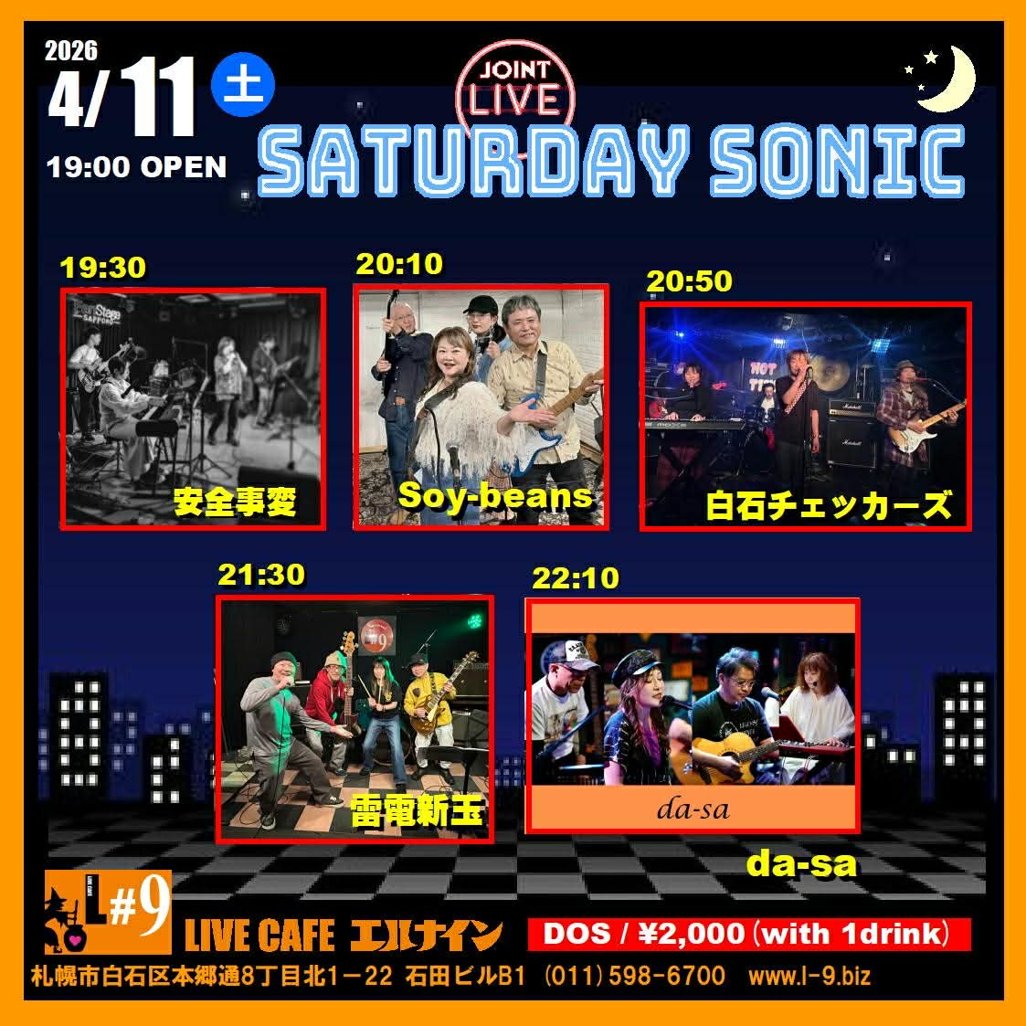 札幌市白石区本郷通8丁目北1-22 石田ビルB1TEL 011-598-6700 E-mail info@l-9.biz■営業時間/20:00~(L.O.23:00) ■定休日/水曜定休、他不定